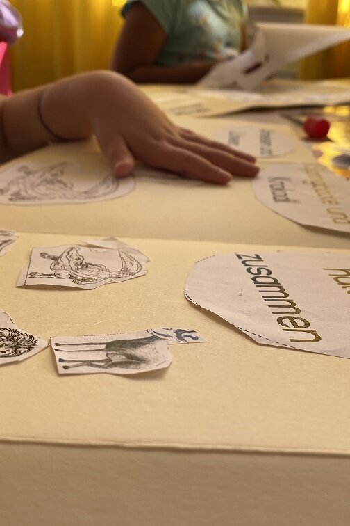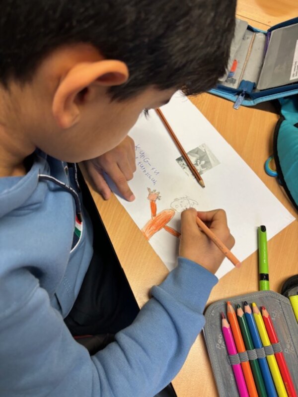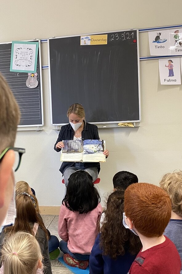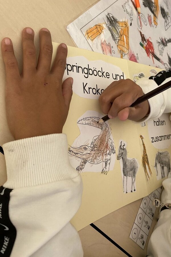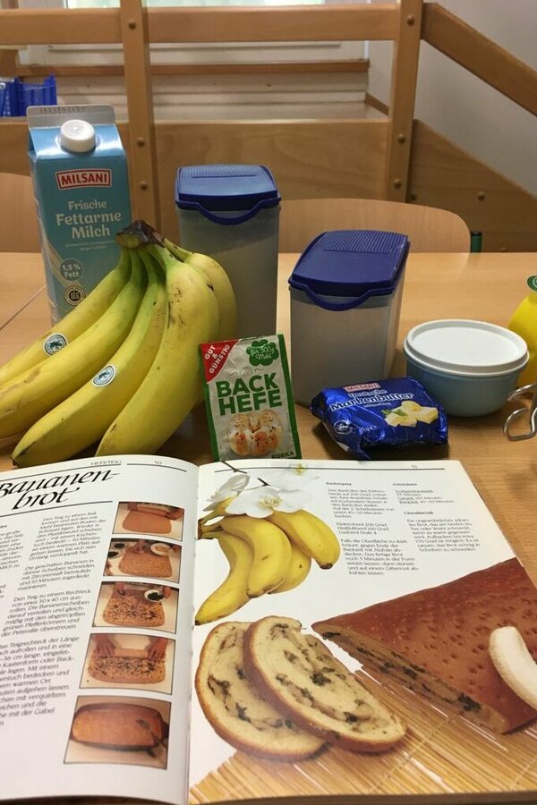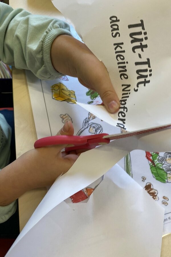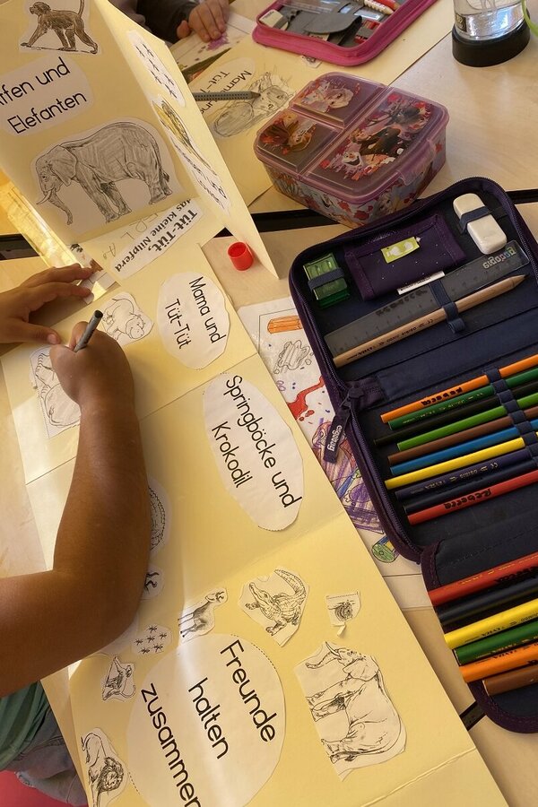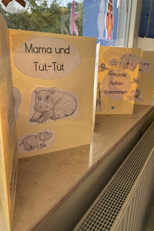In der diesjährigen Projektwoche "Rund ums Buch" haben die Kinder der Ameisenklasse das Buch "Tüt-Tüt, das kleine Nilpferd" gelesen. Zu diesem Bilderbuch habe die Kinder ein Tüt-Tüt gebastelt, ein Bananenbrot gebacken, ein Leporello erstellt, sich sportlich betätigt, gesungen und sich einen passenden Tanz überlegt. Es hat allen Kindern viel Spaß gemacht.