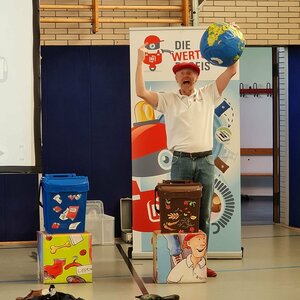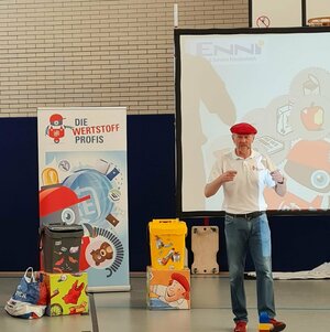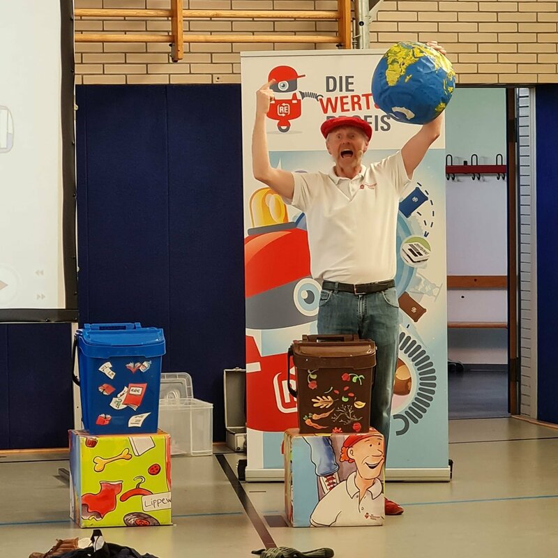 Am Mittwoch (27.04.22) waren die Wertstoffprofis erneut in der Schule zu Besuch. Die Kinder aus Klasse 2 haben hierbei allerlei über unsern Müll und das richtige Mülltrennen spielerisch erfahren.