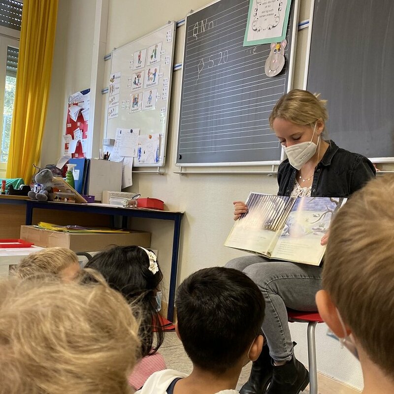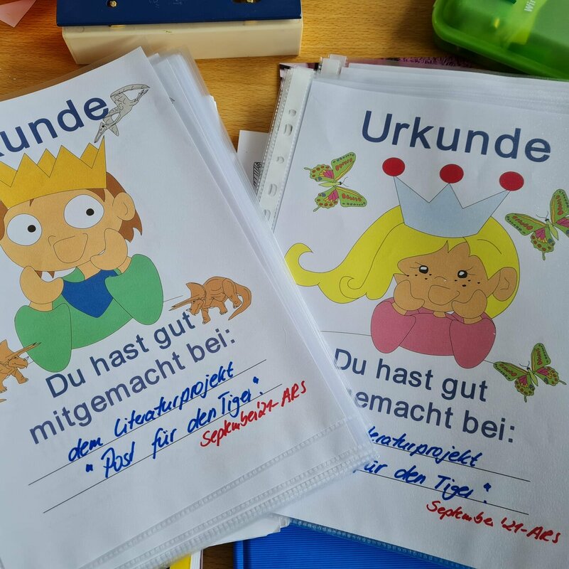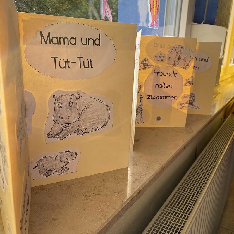 In der vergangene Woche haben sich alle Kinder der ARS mit Literatur beschäftigt. Jede Klasse gestaltete ein eigenes Literaturprojekt, bei dem gebastelt, gemalt, gebacken, geschrieben, gespielt, getanzt oder auch gesungen wurde. Ihre Projekte stellen die Klassen auf ihren Seiten vor: "Tüt-Tüt, das kleine Nilpferd" (1a) , "Raupe Nimmersatt" (1b), "Post für den Tiger" (2a), "Der Grüffelo" (2b), "Das Sams" (3a und 3b), "Märchen" (4a) und "Detektivgeschichten"(4b).