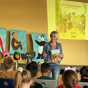 Am heutigen Vormittag gingen die Reichweinkinder auf einer Reise durch die Welt der Bücher. In den ersten beiden Jahrgängen durften die Kinder das Buch "der Elefantenpups" von Heidi Leenen entdecken. Mit musikalischer Untermalung las die Autorin das Buch vor und regte die Kinder zum Mitmachen an. Auch in den anderen Klassen wurde aus verschiedenen Büchern vorgelesen.