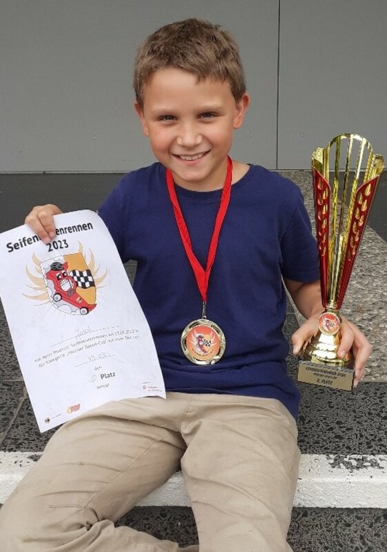 Im Rahmen des traditionellen Moerser Seifenkistenrennens am Sonntag, den 17.09.2023, errang Jakob aus der Klasse 4a für unsere Schule in der Kategorie "Speed Cup" , bei der es ausschließlich um Geschwindigkeit ging, den zweiten Platz. Herzlichen Glückwunsch!