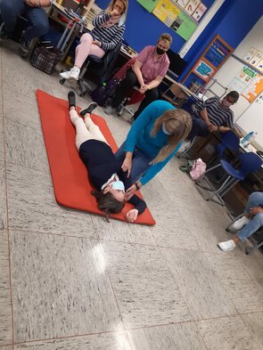 An den vergangenen beiden Tagen (21.+ 22.09.2020) bereiteten sich die Lehrerinnen der ARS gemeinsam auf den Notfall vor. Alle Kolleginnen frischten ihre Kenntnisse im Umgang mit Verletzungen, Insektenstrichen, Verbrennungen und ernsteren Krankheiten auf und übten, wie sie in einem solchen Fall richtig handeln.