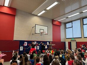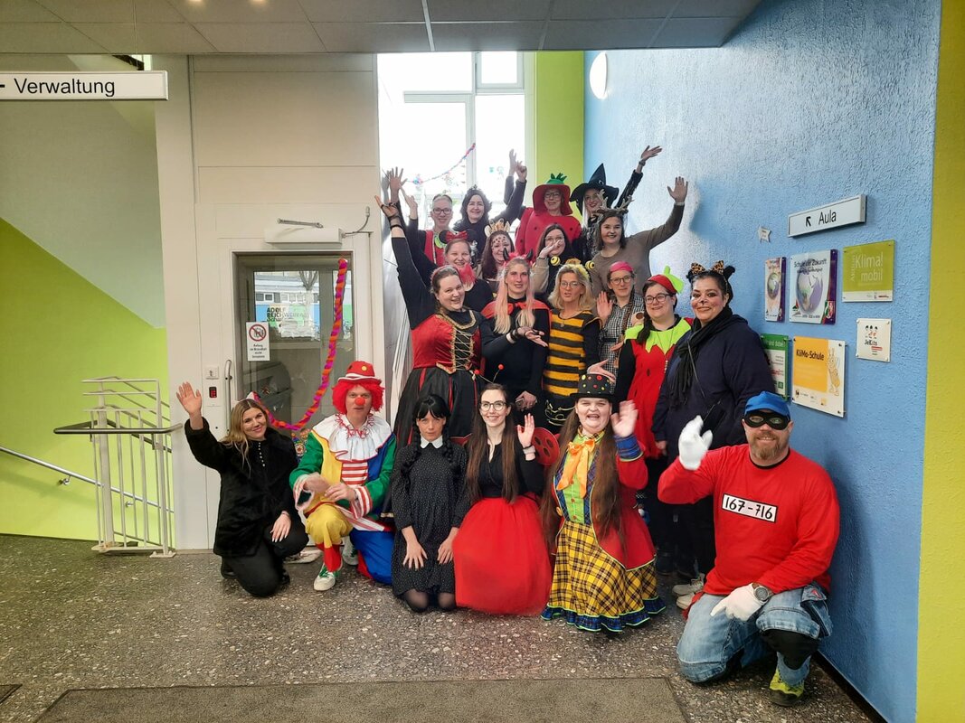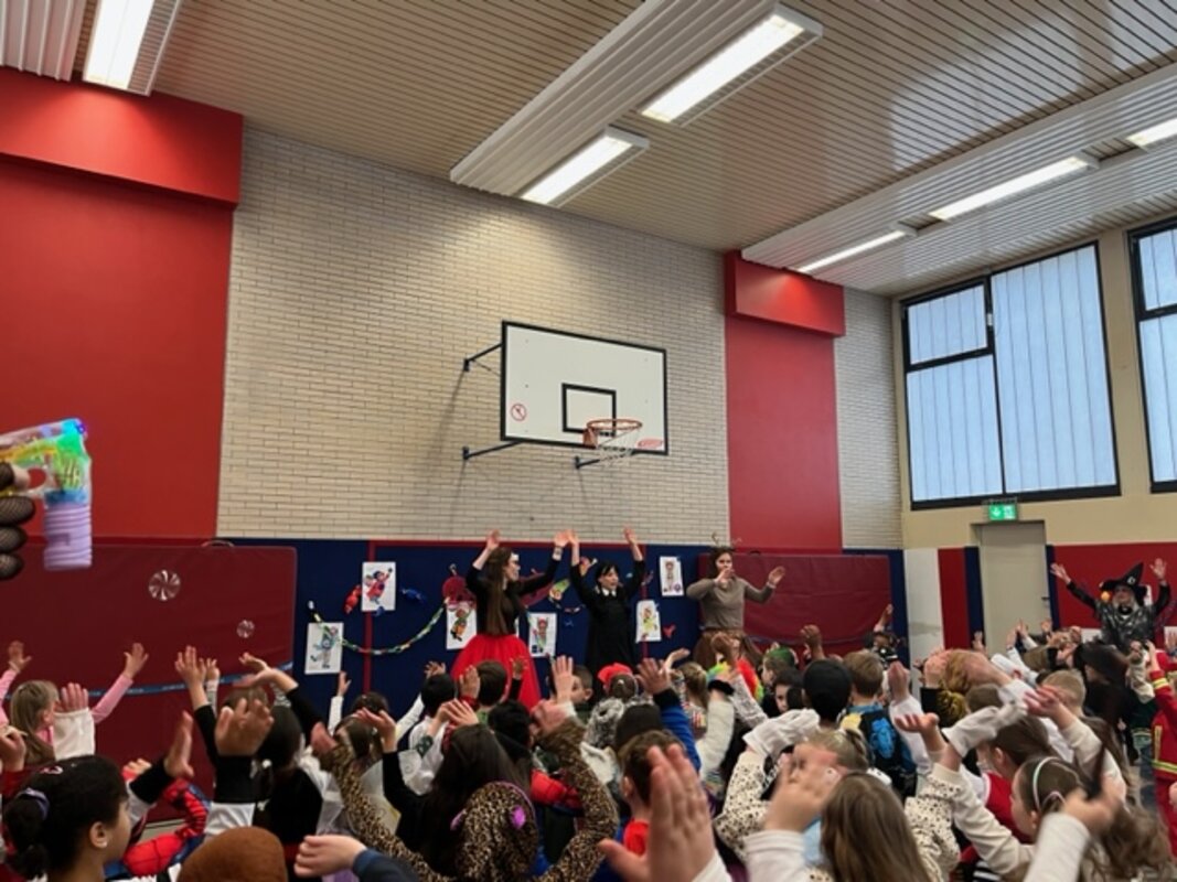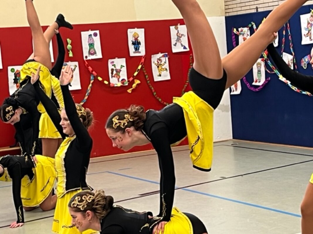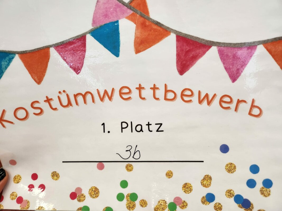 Nach der großen Pausen zogen alle Kinder und Lehrkräfte als lange Polonaise durch die Schule und in die Turnhalle hinein. Dort wurde ausgibig getanzt und gespielt. Beim Konstümwettbewerb gewann die Klasse 3b den ersten Platz. Zum Abschluss besuchte uns die Tanzgarde des KG Fidelio. Es war ein toller Vormittag!