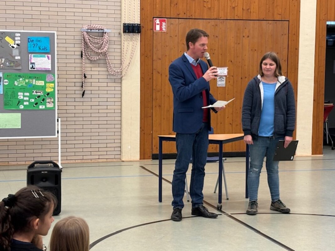 Am Freitag, den 17.1.2025 fand nach der großen Pause der diesjährige Vorlesewettbewerb in der Turnhalle statt. Der Vorlesewettbewerb bestand aus 2 Kategorien: im ersten Teil stellt je ein Schüler pro Klasse ein selbstgewähltes Lieblingsbuch vor und las daraus einen kurzen Auszug vor. Parallel bereiteten zwölf weitere Schüler und Schülerinnen einen unbekannten Text für das Lesetheater vor. Die jeweiligen Sieger wurden von der Jury bewertet und gekürt. In der Jury saßen eine Lesepatin der Schule, eine Vertreterin der Stadtbücherei und der Vorsitzende des Fördervereins. Wir danken allen herzlichst für ihre Unterstützung.