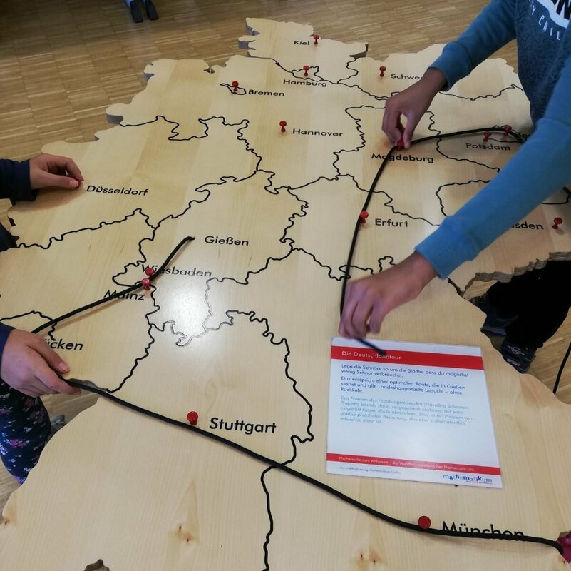 Am 01.10.2019 gingen wir (Klasse 4b) mit der 4a zum Gymnasium in den Flider Benden, um die Ausstellung „Mathe zum Anfassen“ zu besichtigen. Auf dem Weg dorthin überraschte uns sehr starker Regen. Als wir endlich ankamen, hatte jeder von uns Wasser in den Schuhen! Gott sei Dank war es ein warmer Tag, keinem ist kalt geworden. In der Aula des Gymnasiums gab es viel zu entdecken. Es gab Aufgaben am Computer, viele Puzzlespiele und Knobelaufgaben. Am besten aber gefiel allen die Station mit der riesigen Seifenblase, die um ein Kind herum hochgezogen werden konnte. Die Zeit verging wie im Flug und wir mussten uns wieder auf den Rückweg machen.