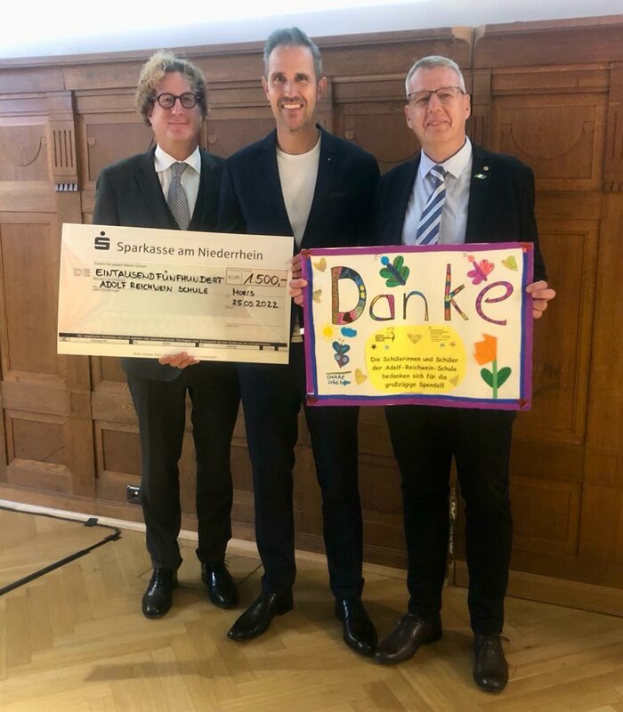 Am 25.9.2022 übergab der Grafschafter Lions Club Moers an den Förderverein unserer Schule eine großzügige Spende für das Zirkusprojekt. Clubchef Thomas Behrendt (rechts) überreichte Martin Menkhaus, 2. Vorsitzender des Fördervereins (Mitte) einen Scheck über 1.500€. Und auch der Präsident des Lions Clubs Moers, Philipp Schneider (links), wurde zum „Möglichmacher“: Sein Club unterstützt den Zirkus mit 500€. Die Kinder und Angehörigen der ARS bedanken sich herzlich!