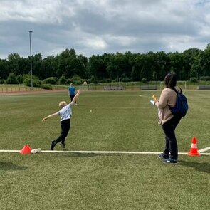 Am gestrigen Dienstag (7.6.2022) fanden die Bundesjugendspiele am GSV Platz für alle Schüler der ARS statt. Morgens früh gab es auf dem Schulhof alles aus der Spielgarage und ganz viel zum Spielen. Die 3b war zuerst beim Werfen. Ein Mitschüler aus unserer Klasse hat über 30m weit geworfen. Danach haben wir eine Frühstückspause gemacht. Dann sind wir zum Sprint. Einige Jungs waren richtig schnell. Als letztes waren wir beim Weitsprung. Jeder durfte dreimal springen. Anschließend sind wir mit der 4b zurück zur Schule gelaufen. Frau Walter hat alle Cappies eingesammelt. Bestimmt bekommen viele eine Urkunde.