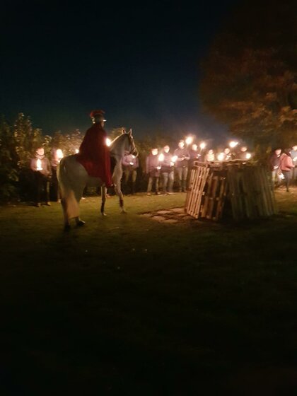 Am vergangenen Samstag fand wie auch in den letzten Jahren der St-Martinszug an unserer Schule statt. Mit mehr als 500 Menschen zogen die Kinder, Eltern, Verwandte und Bekannte durch die Straßen und sangen gemeinsam Martinslieder.