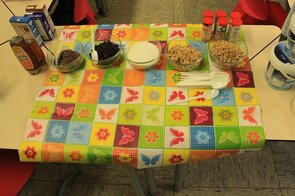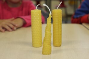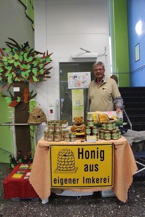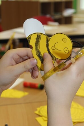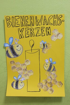 Nach den beiden Schulstunden starteten die verschiedenen Angebote rund um die Bienen. So gab es Bastelaktionen, bei denen die Kinder Fingerpuppe oder Wachskerzen erstellen konnten. Mit viel Geschick schafften es die Besucher die "Bienen" zurück in ihreren Bienenstock zu werfen oder in der Rolle der Biene den "Nektar" einzusammeln. Natürlich durfte der Genuss von Honig nicht fehlen und so konnte dieser bei einem Imker vor Ort gekauft oder direkt im Joghurt probiert werden.