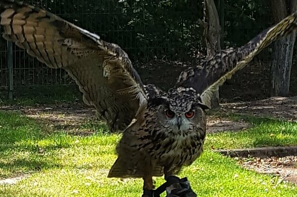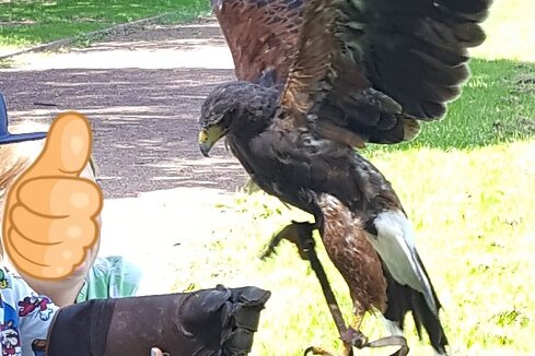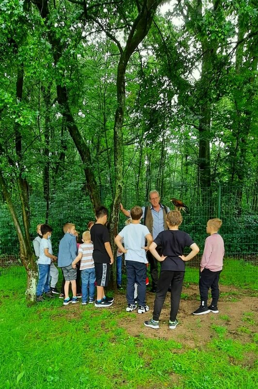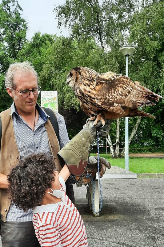 - der Falkner Herr Schepers mit seinen Tieren