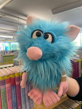 In der Bücherei angenommen begrüßte uns das kleine, blaue Bibliotheksmonster Schorsch. Gemeinsam lernten wir viel darüber, wie eine Bücherei funktioniert und welche Regeln es gibt.