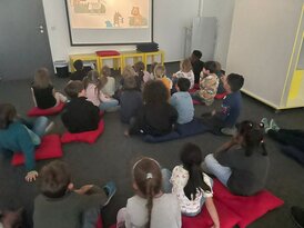 Danach schauten wir auf der großen Leinwand das Bilderbuch "Das Bilderbuch und der Hase". Danach durften wir ganz in Ruhe zwischen all den Büchern und Spielen stöbern. Zum Abschluss konnte jedes Kind mit seinem eigenen Büchereiausweis ein Buch selbst ausleihen.